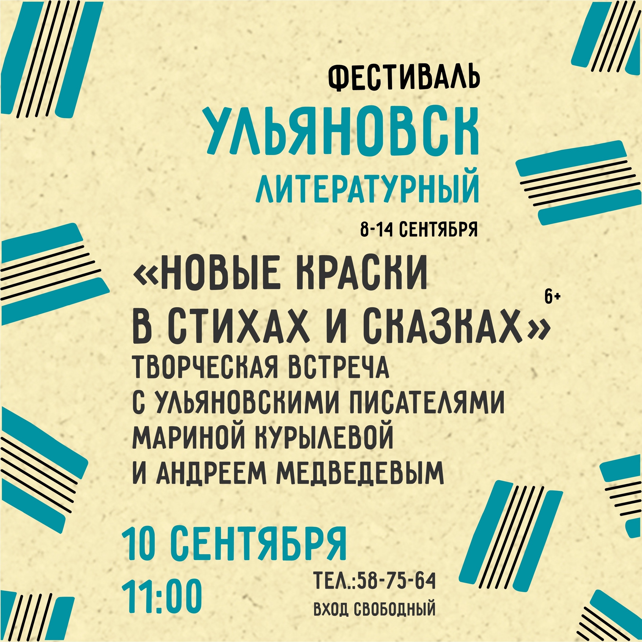 Приглашаем окунуться в мир литературы и искусства вместе с Аксаковкой! Фестиваль "Ульяновск литературный" ждет вас! С 8 по 14 сентября мы превратим классику в жизнь: встречи с любимыми писателями, захватывающая театральная постановка, увлекательные мастер-классы, кинопоказы и ещё много интересного ждёт всех гостей нашего фестиваля. Откройте для себя новые грани любимых произведений и получите незабываемые впечатления! Не упустите шанс стать частью нашей истории и первым узнавать обо всех событиях фестиваля. Присоединяйтесь к нашему чату прямо сейчас: clck.ru/3NzRpm До скорой встречи на фестивале «Ульяновск литературный» #Ульяновский фонд поддержки детского чтения #Аксаковка #БиблиотекаАксакова #Фестиваль #УльяновскЛитературный #ДеньГорода #КреативныйГород2025 #КультураДляШкольников